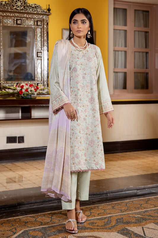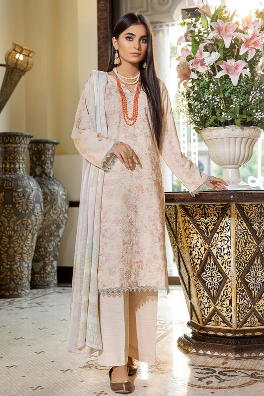 3 Piece – Luxury Embroidered Slub Zari Peach – 404