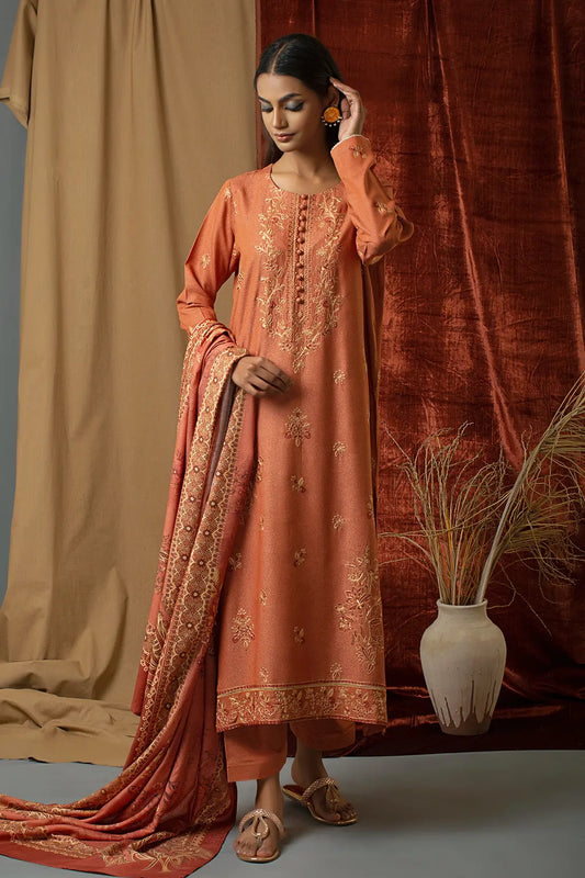 3 Piece – Luxury Embroidered Slub Zari Peach – 405