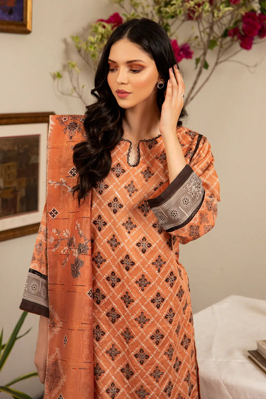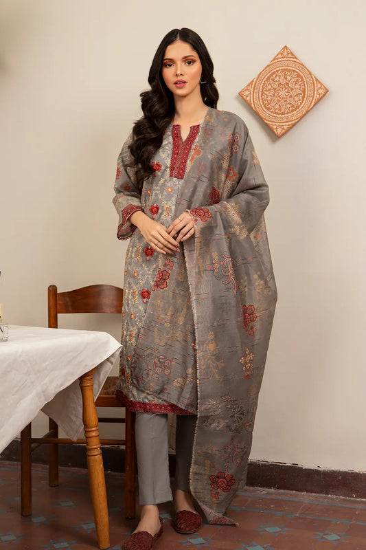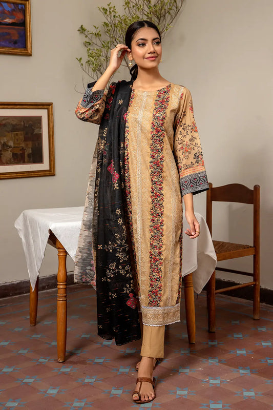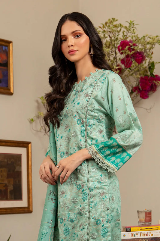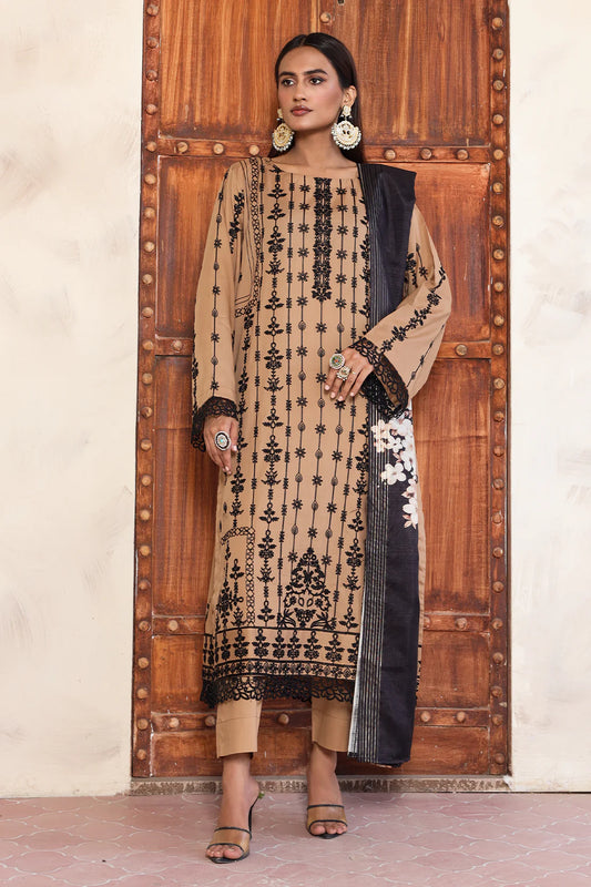 3 Piece - Embroidered Luxury Lawn - 7435