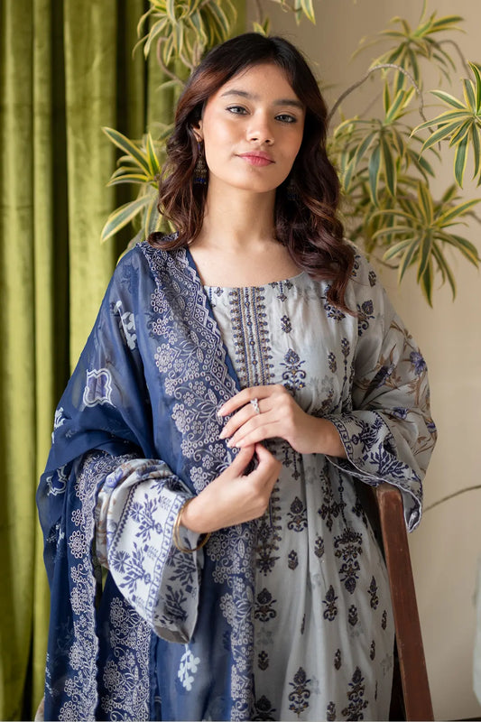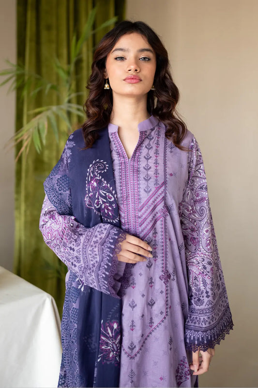 3 Piece - Embroidered Luxury Lawn - 7433