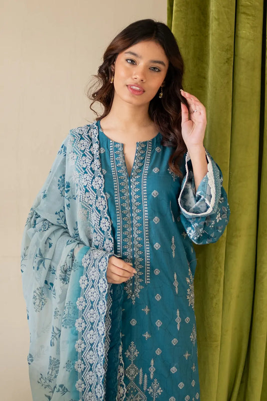 3 Piece - Embroidered Luxury Lawn - 7440