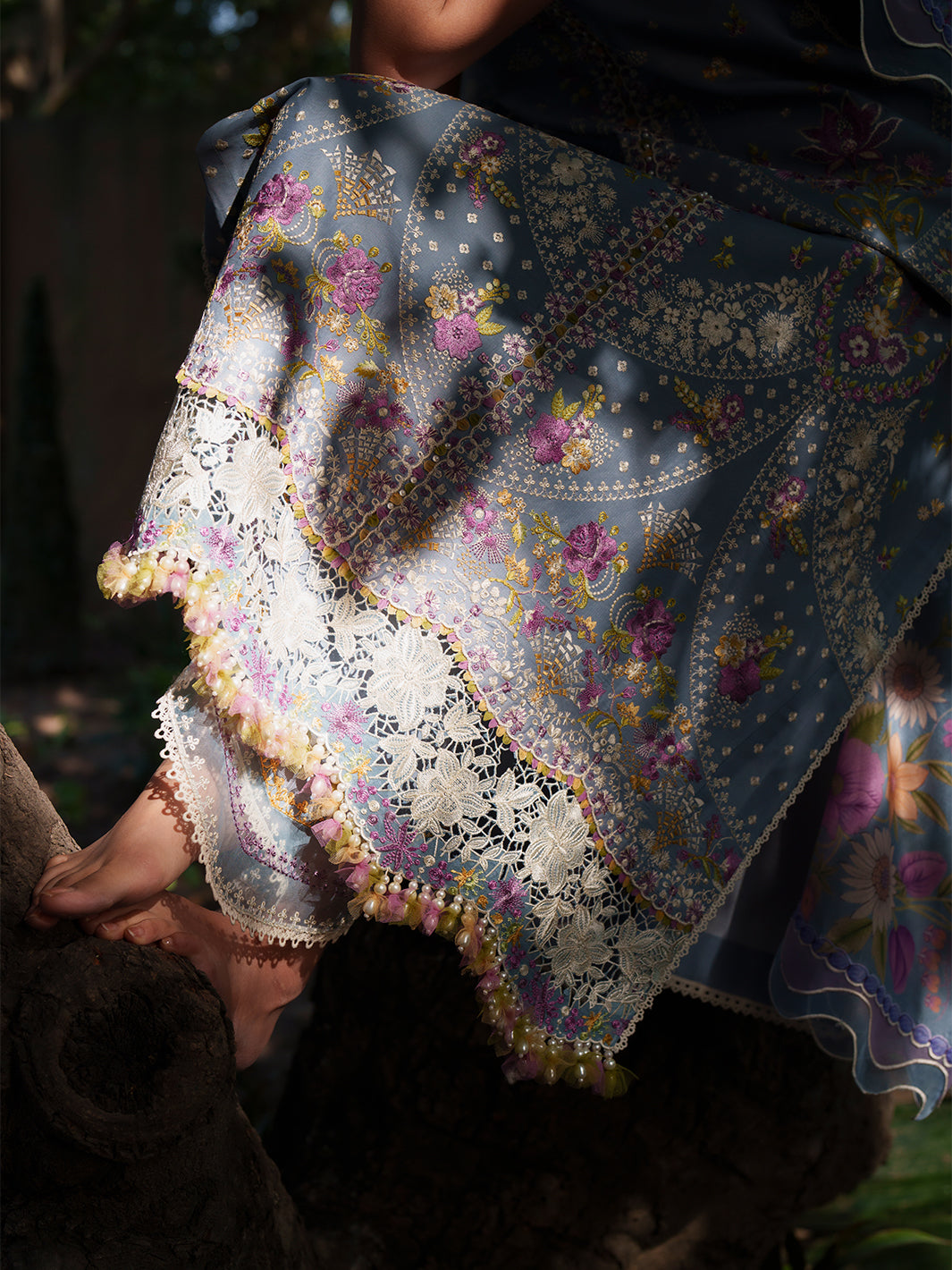| Embroidered Daman Motif On Dyed Organza | 1 Piece |