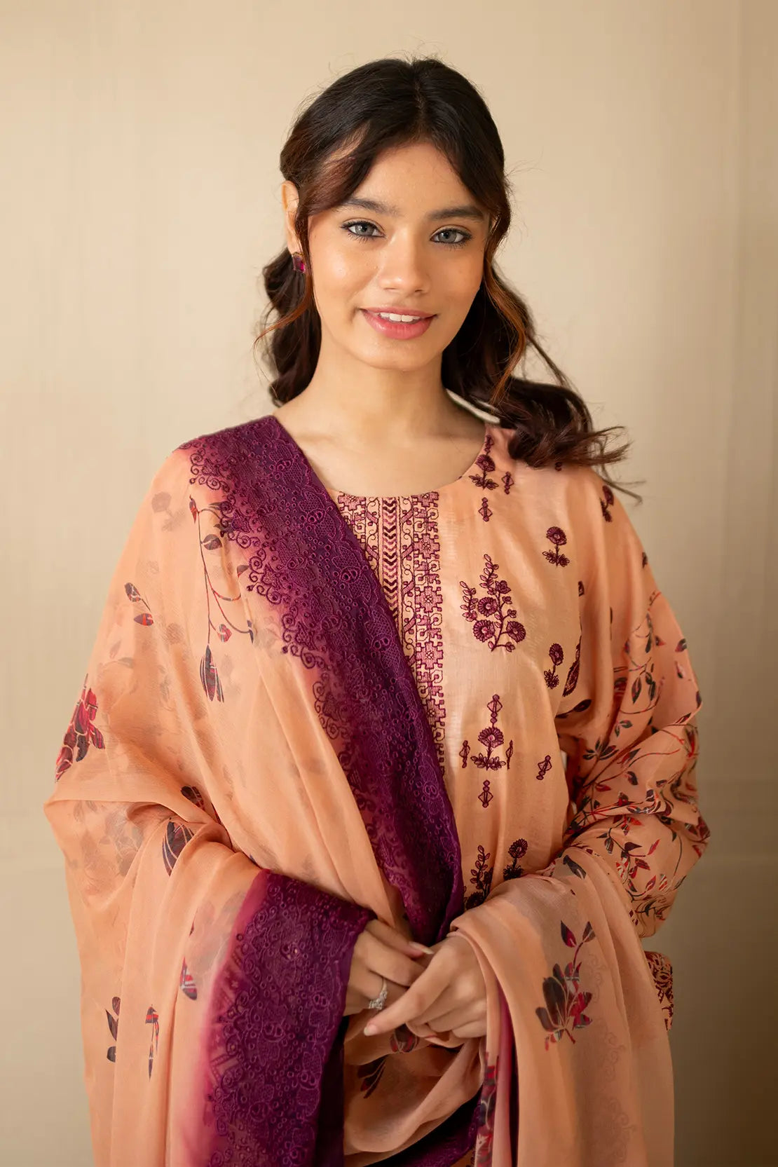 Dupatta: Digitally Printed Embroidered Bemberg Chiffon (2.5Mtr)