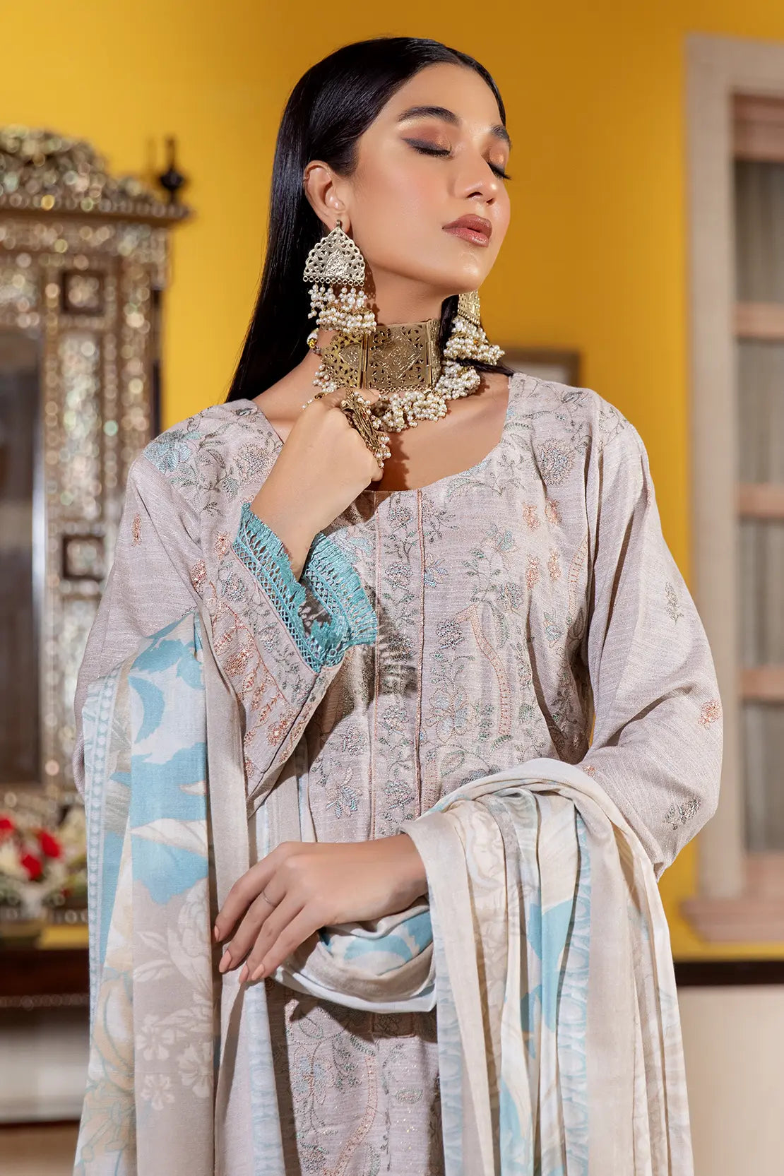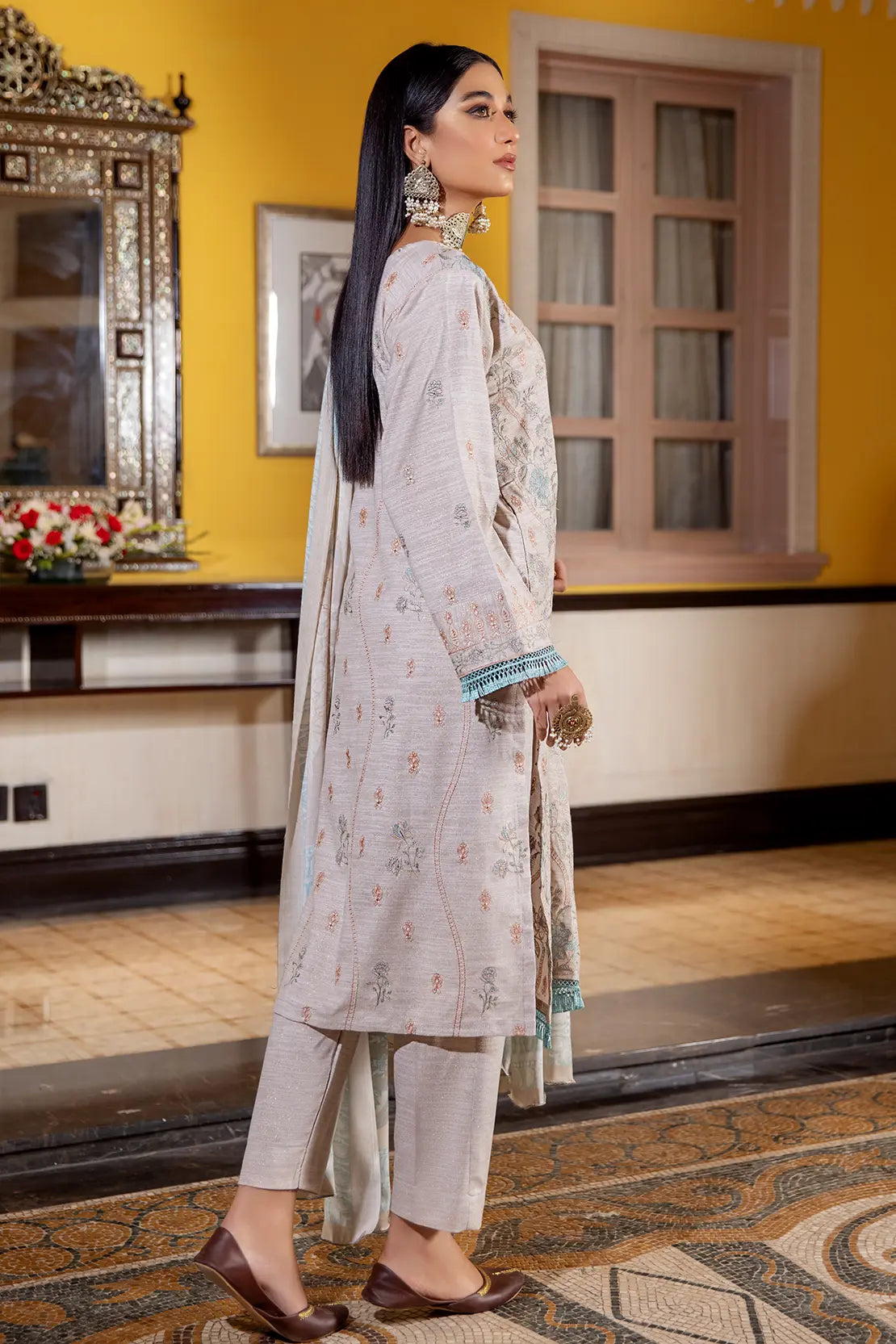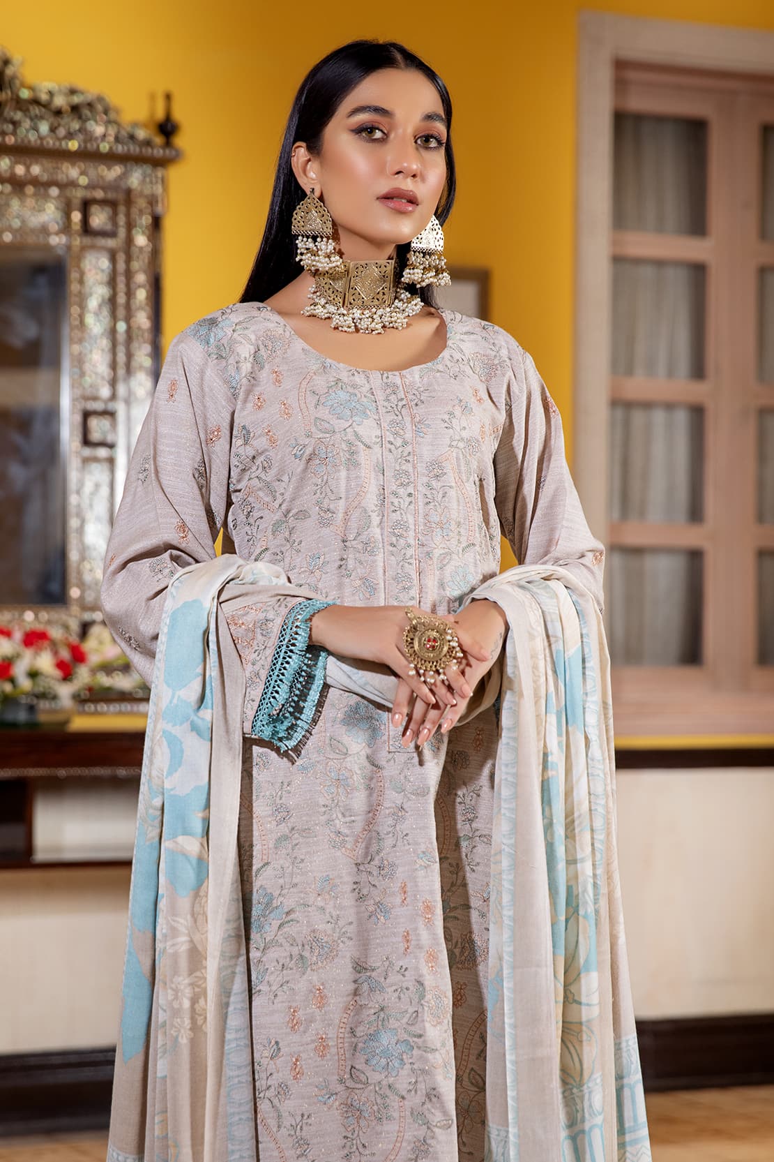 3 Piece – Luxury Embroidered Slub Zari Peach – 406