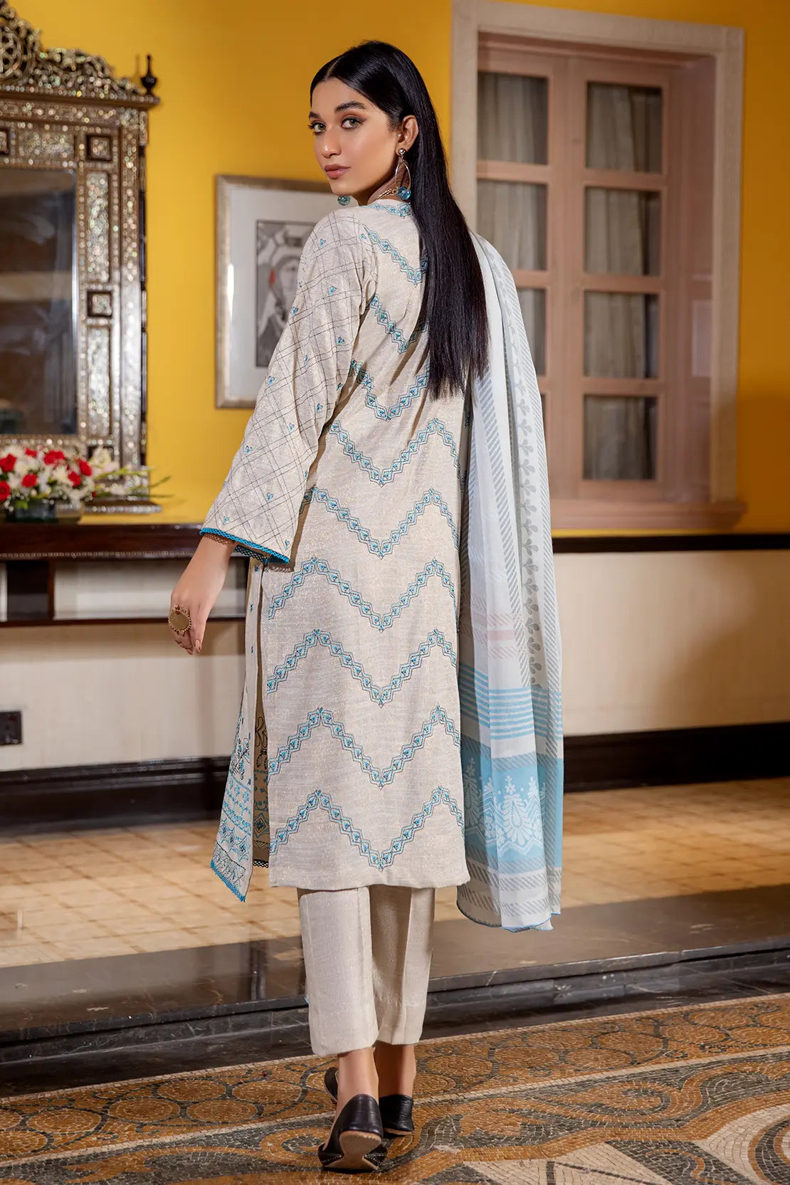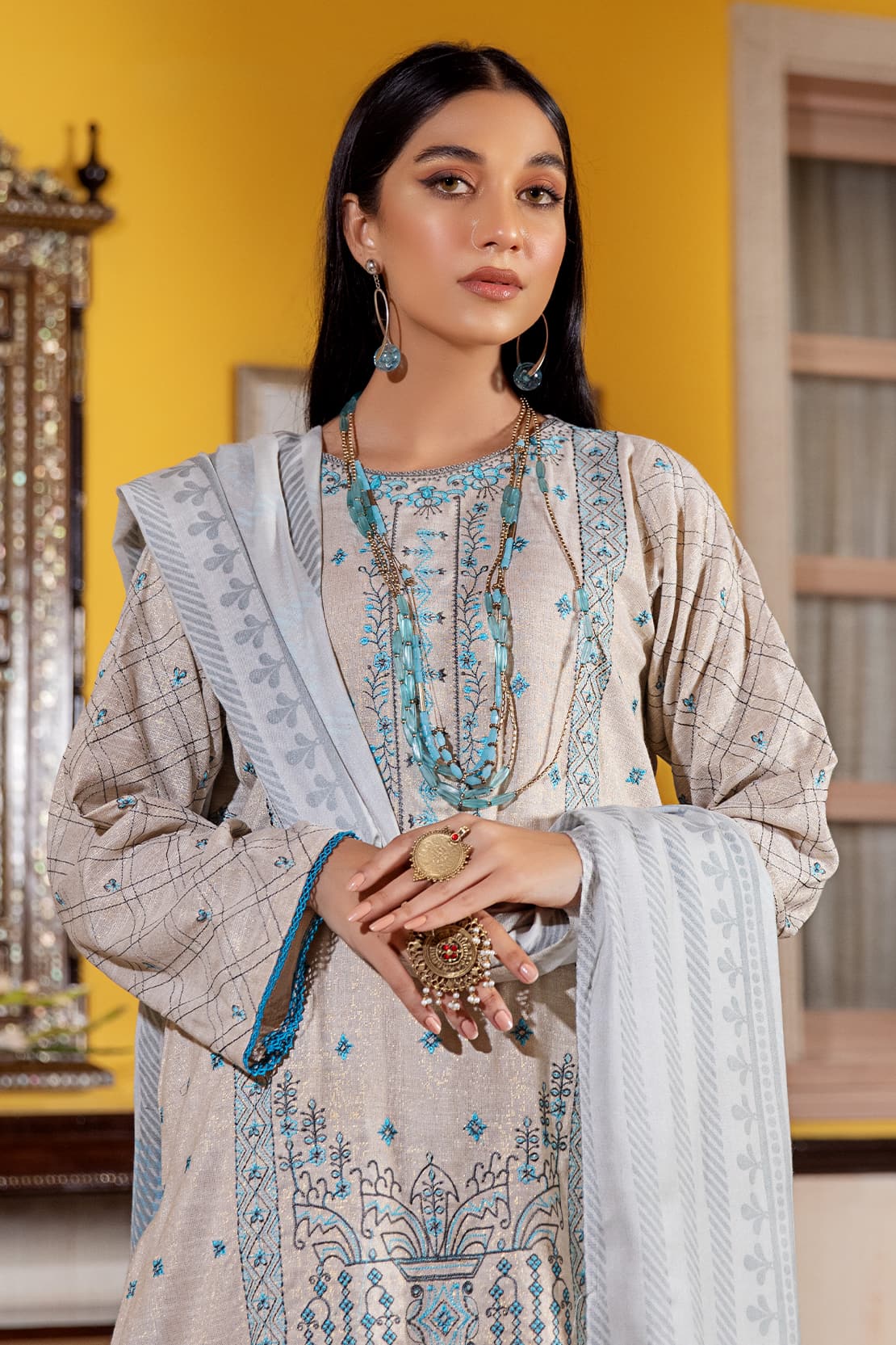 3 Piece – Luxury Embroidered Slub Zari Peach – 408