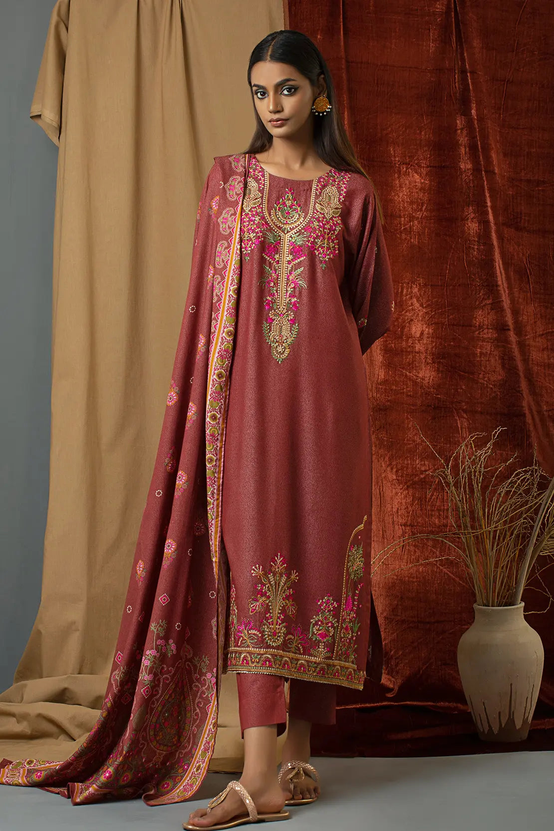 Shirt: Premium Dyed Karandi with Embroidered Front, Back & Sleeves