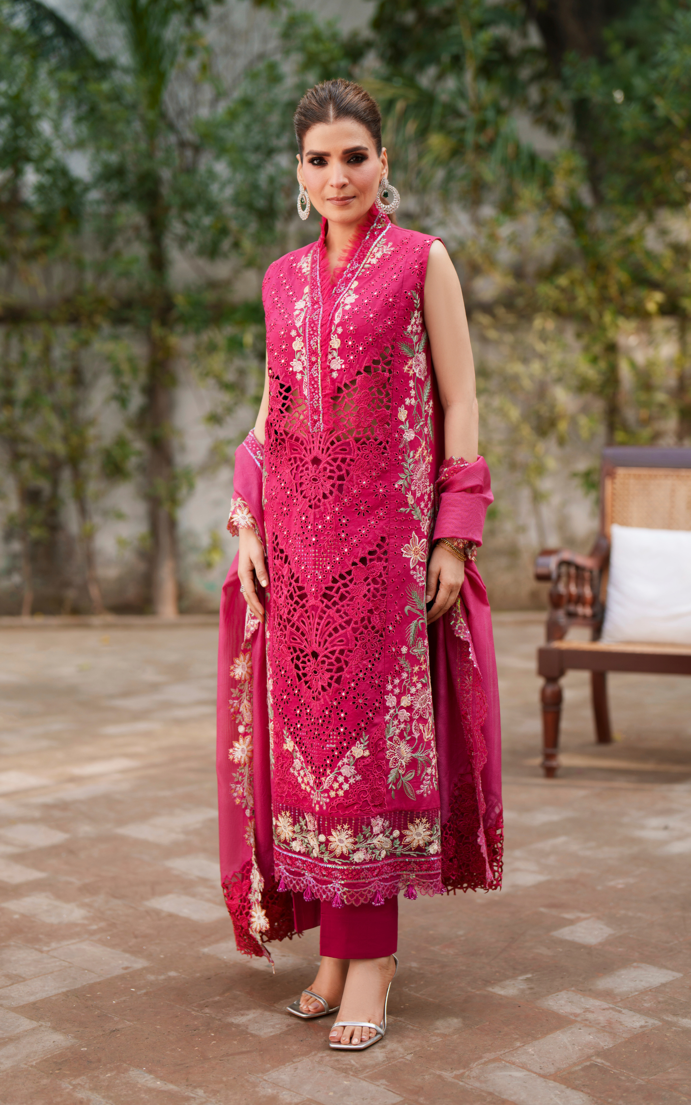 - Embroidered sequins sleeves on lawn.