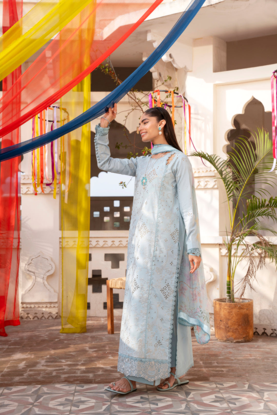 Dyed Embroidered Chikankari Front 1.25 Mtr
