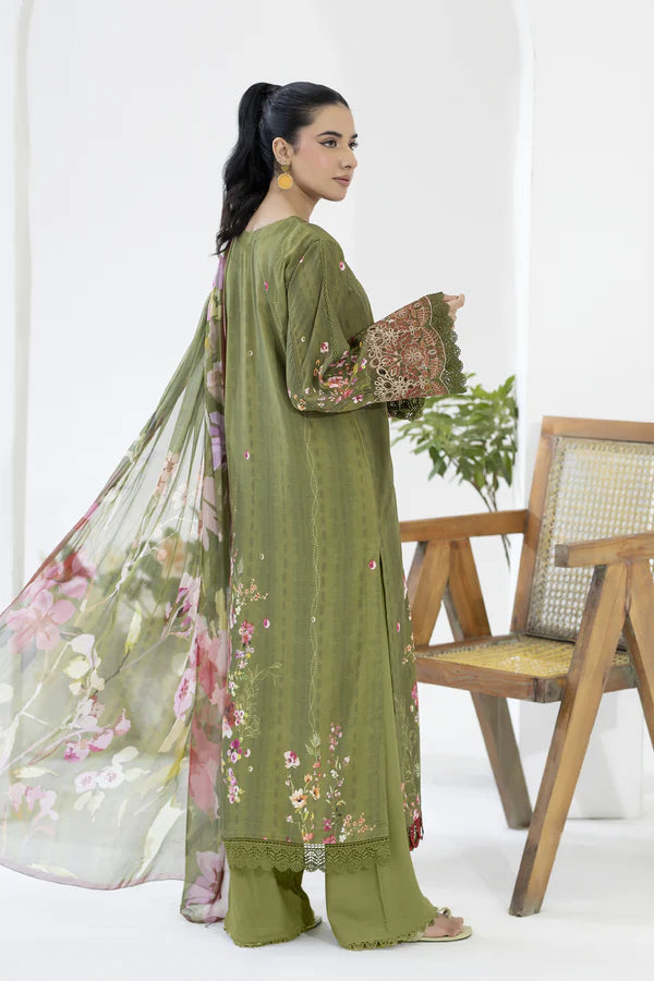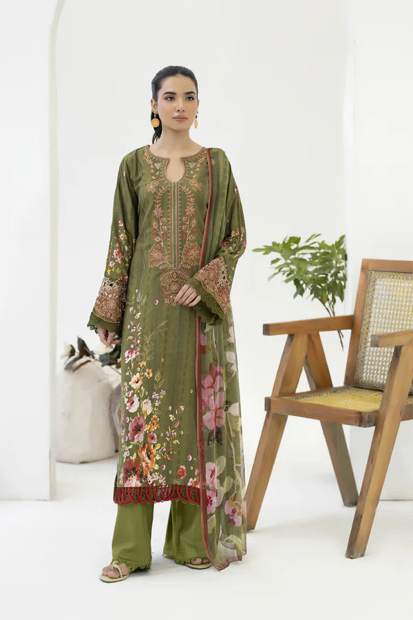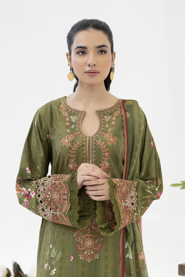 EMBROIDERED+PRINTED STAPPLE SLUB WITH PRINTED CHIFFON DUPATTA