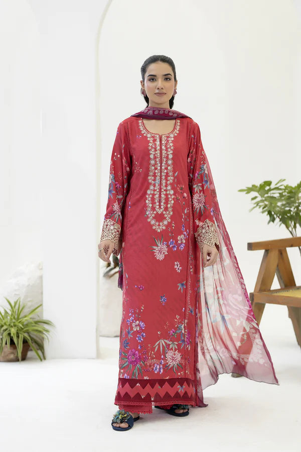 EMBROIDERED+PRINTED STAPPLE SLUB WITH PRINTED CHIFFON DUPATTA
