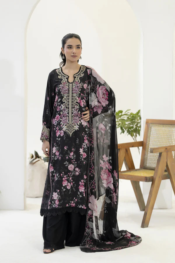 EMBROIDERED+PRINTED STAPPLE SLUB WITH PRINTED CHIFFON DUPATTA