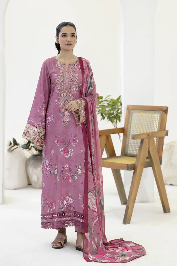 EMBROIDERED+PRINTED STAPPLE SLUB WITH PRINTED CHIFFON DUPATTA