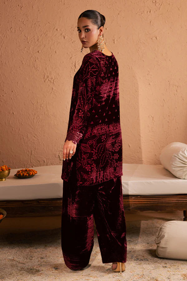 - VELVET PALACHI SHIRT WITH HAND EMBELLISHED AND EMBROIDERED NECKLINE