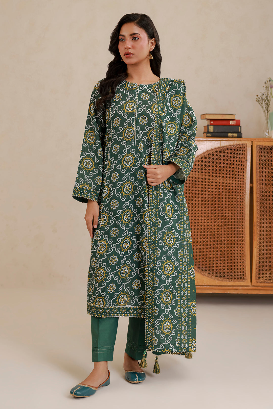 Digital Printed Lawn Shirt - Digital Printed Lawn Dupatta - Dyed Cambric Trouser